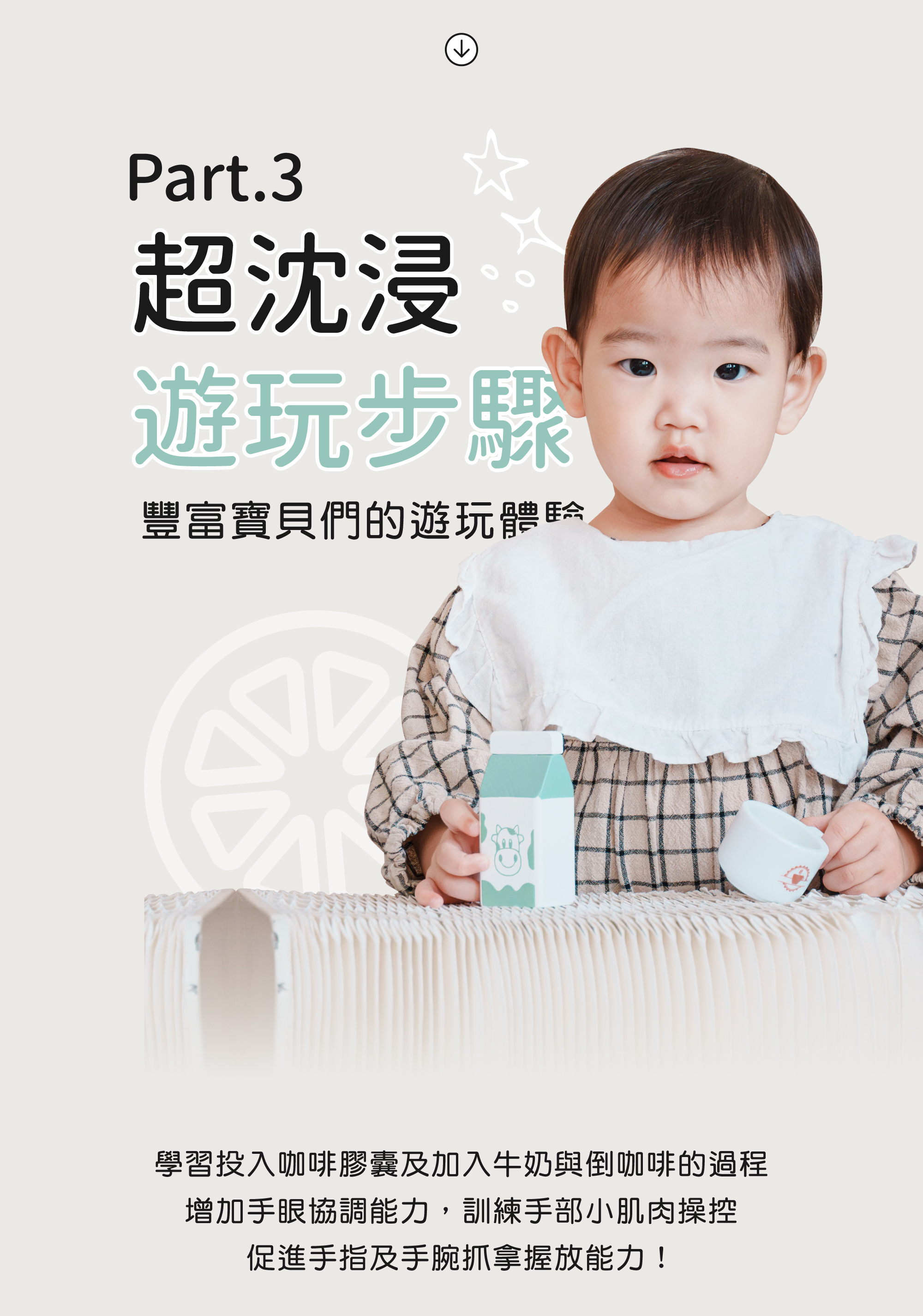 ★父母可以實際安排一場咖啡廳約會,和寶貝到真正的咖啡店共享親子時光,與生活更為貼近,也能增加寶貝對此遊戲與真實生活中的連結