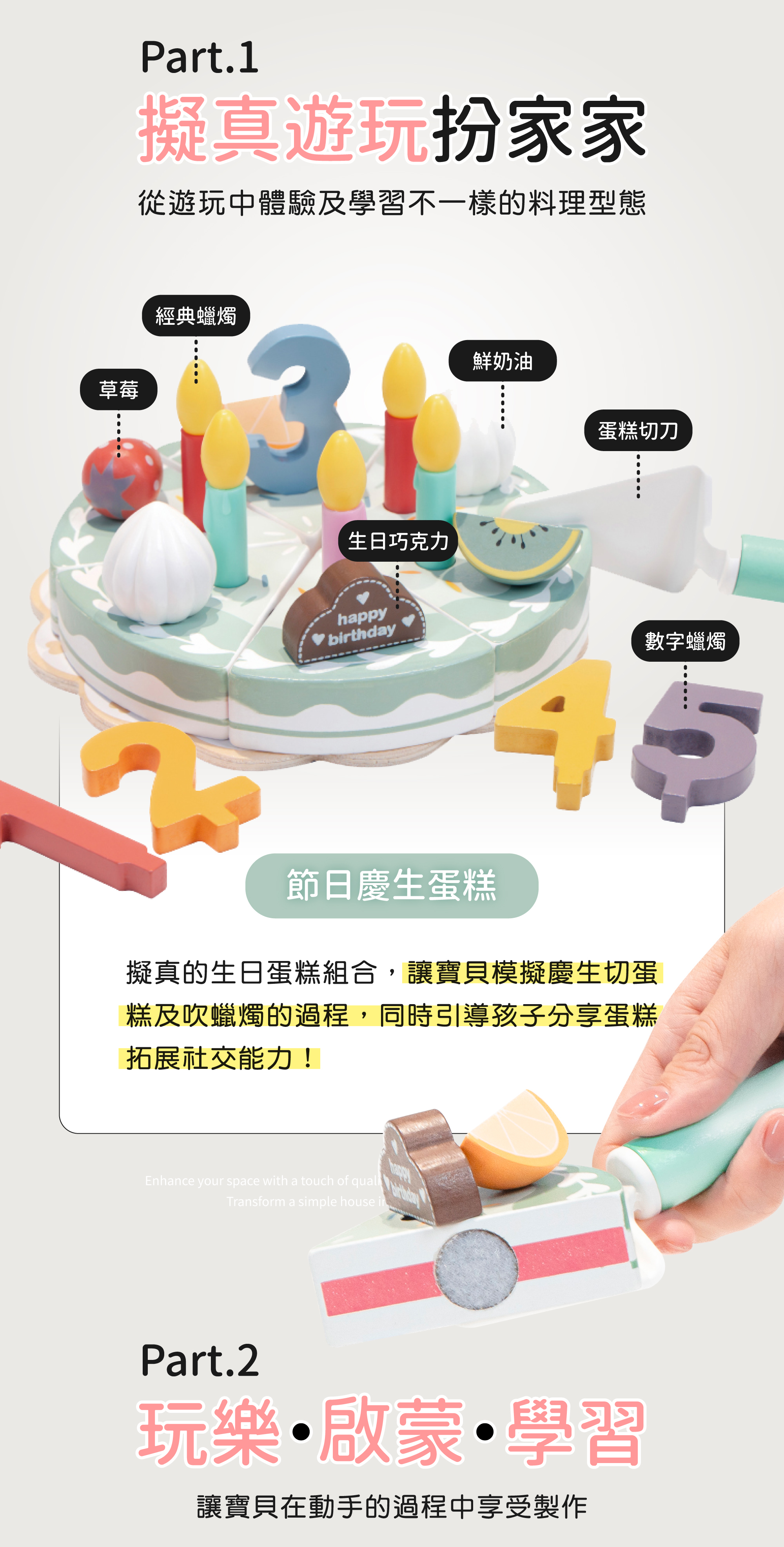 ★擬真的生日蛋糕組合,讓寶貝模擬慶生切蛋糕及吹蠟燭的過程