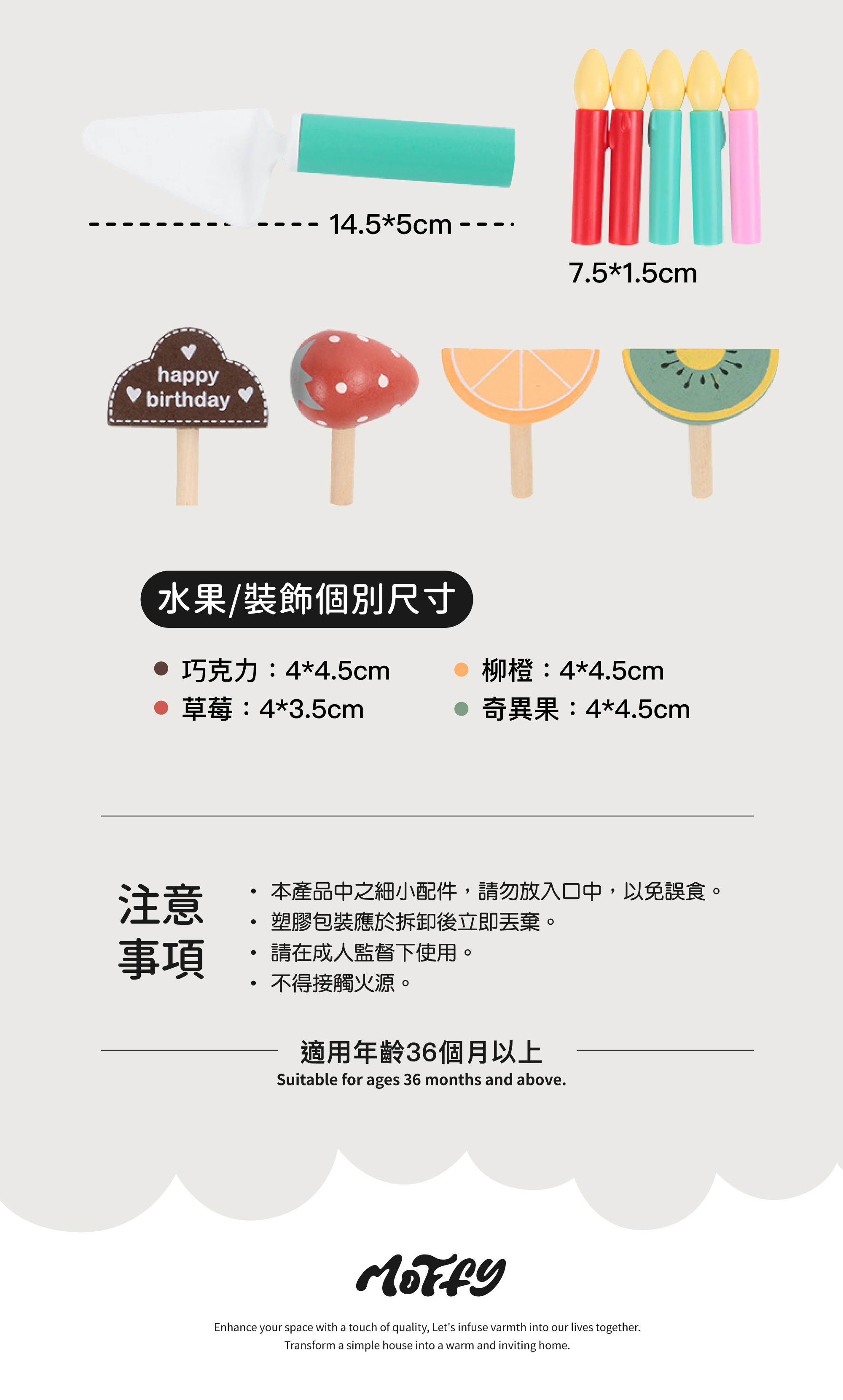 ★歲數蠟燭、燭火蠟燭、擠花奶油、各個水果裝飾及生日插排等,皆可拆,皆可插入,逼真的圖案設計,更顯生動活潑,也豐富寶貝的視覺