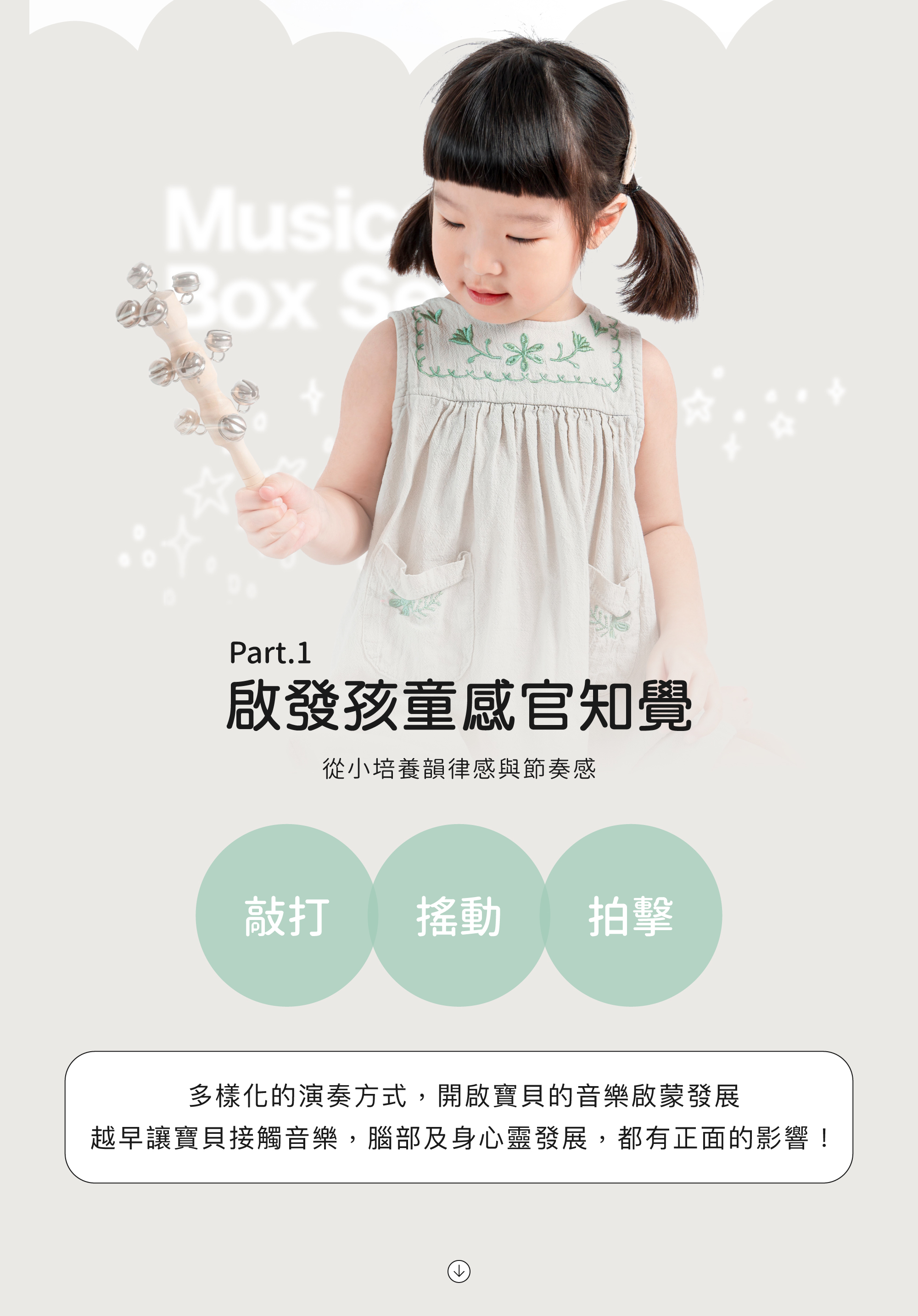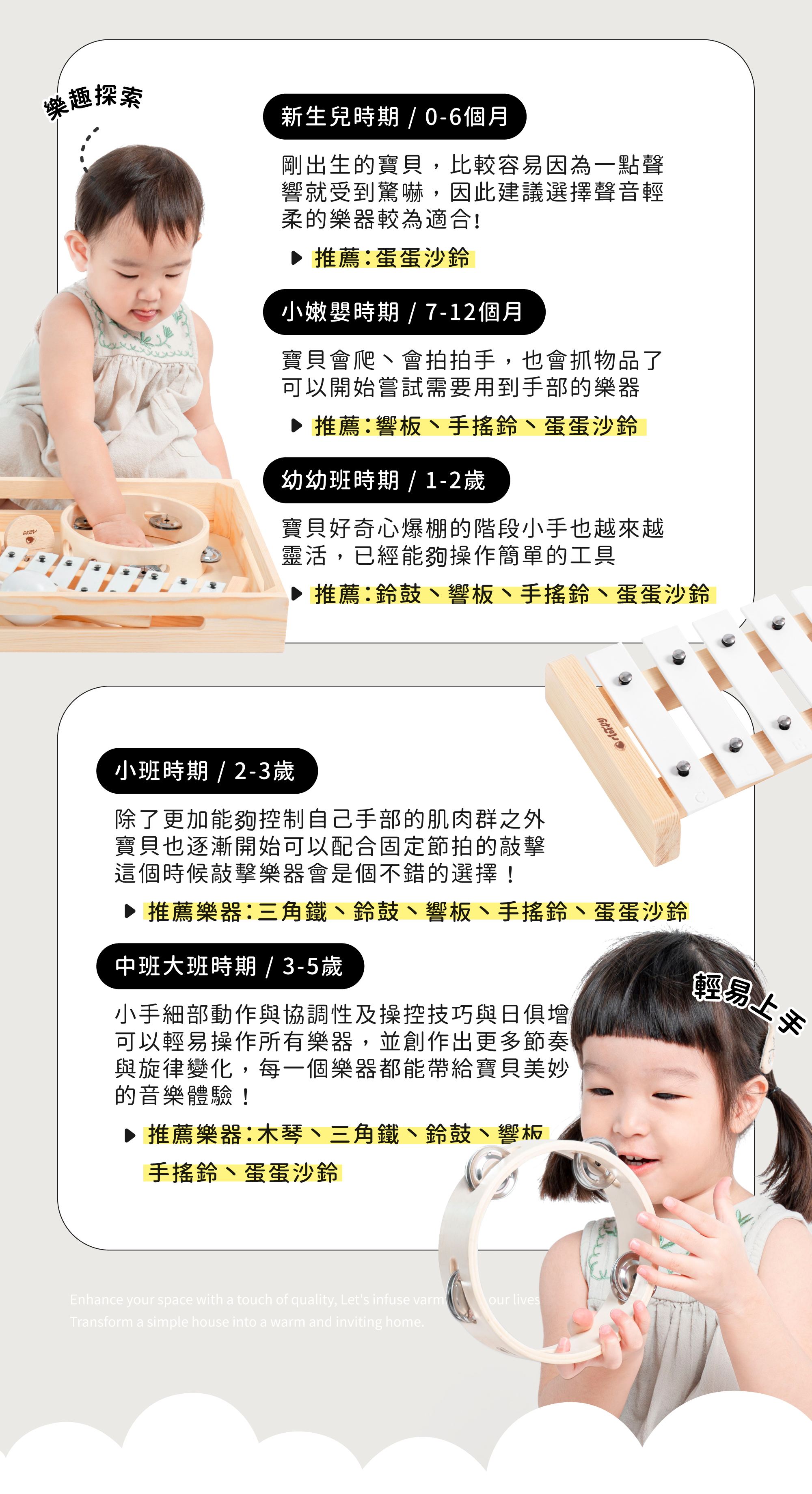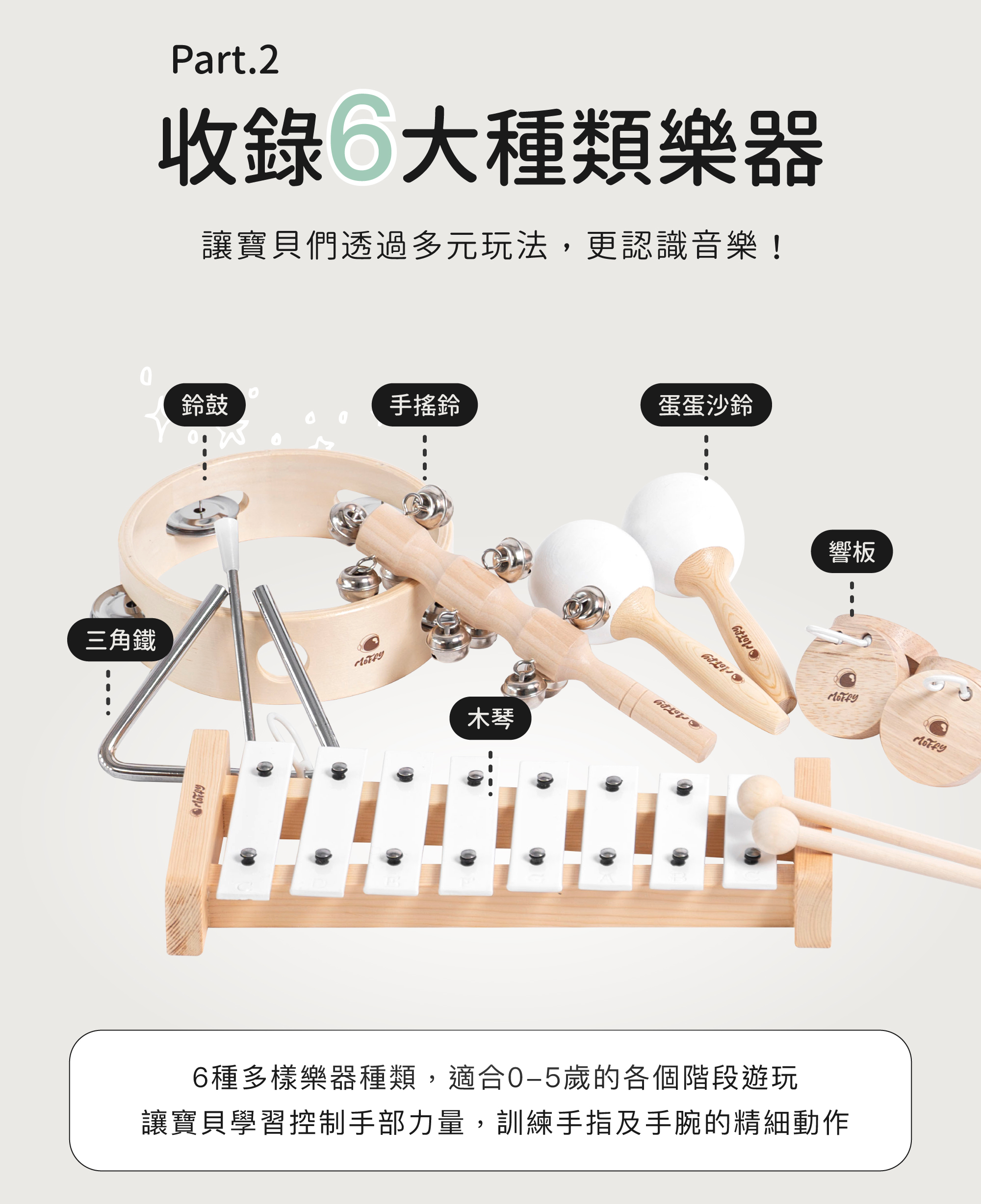 ♬ 敲打、搖動、拍擊…等,多檨化的演奏方式,開啟寶貝的音樂啟蒙發展