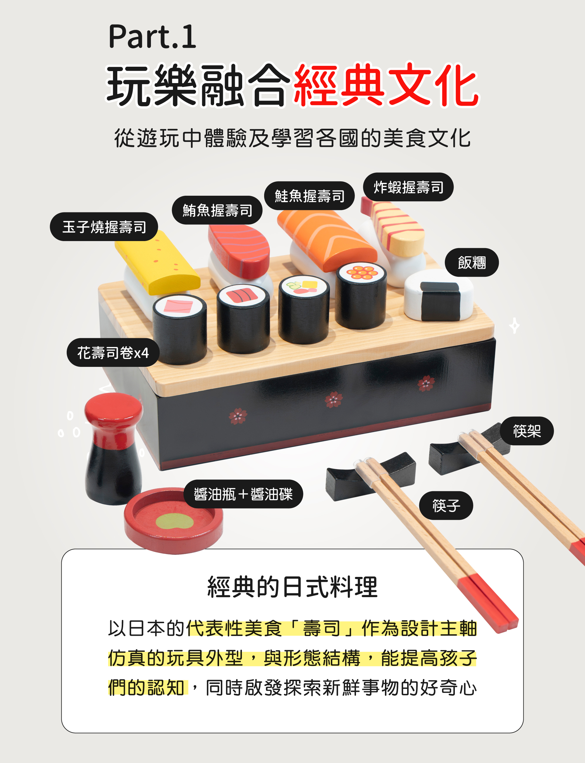 ★父母可以在一起玩樂時,提供日式料理文化等相關資訊,與仿真玩具相對應,提高寶貝的認知