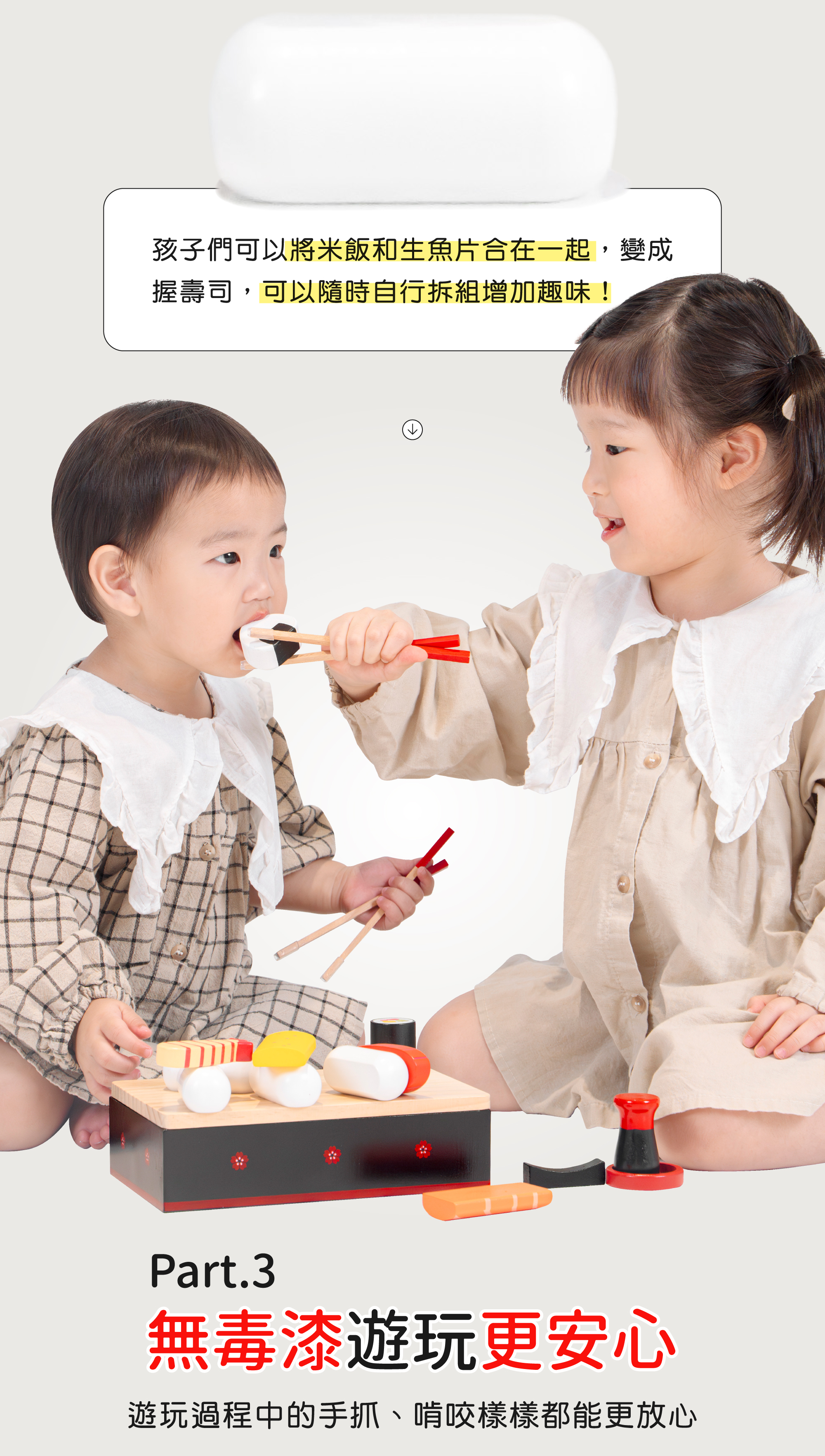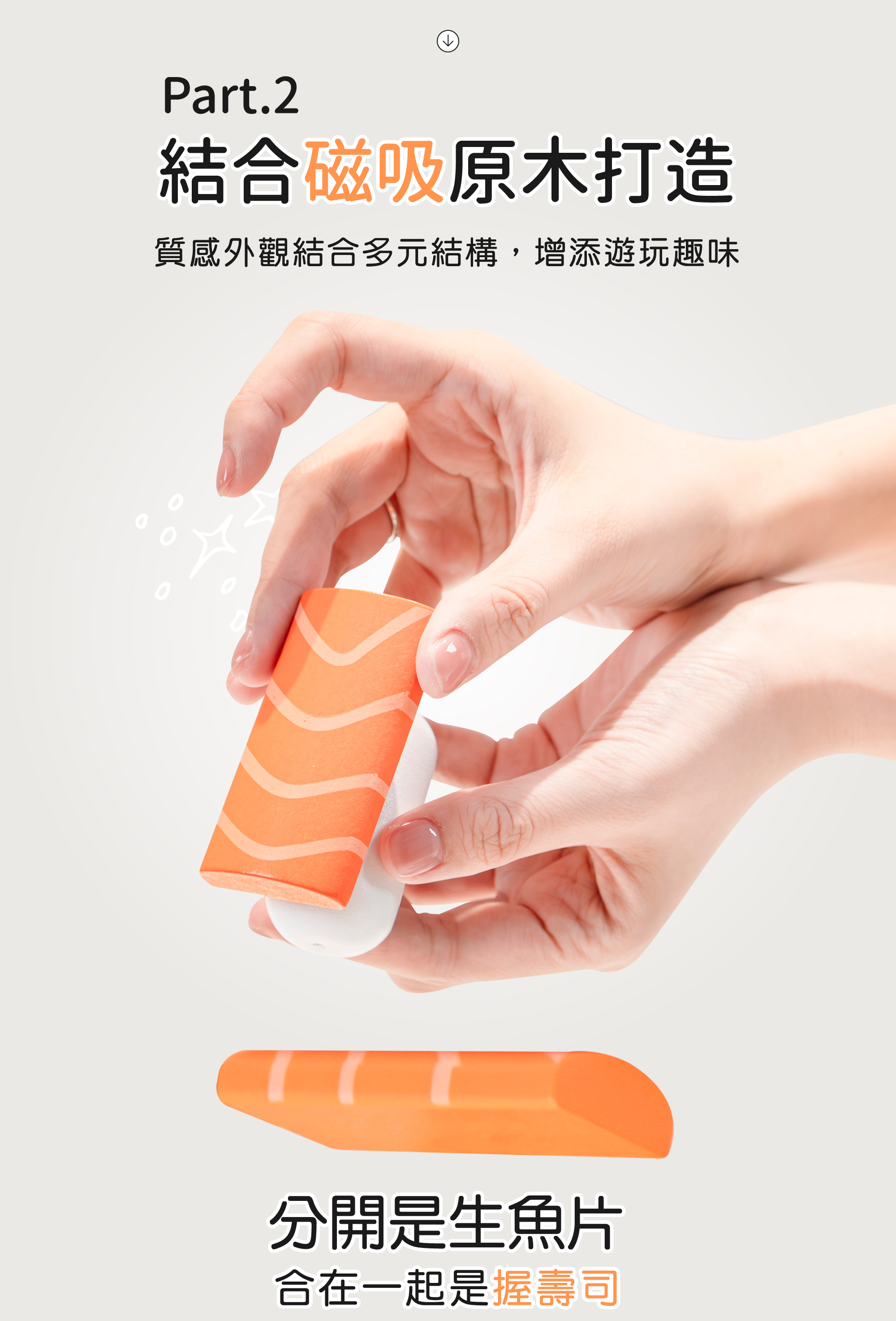 ★磁吸式設計,寶貝可以將米飯和生魚片合在一起,變成握壽司,隨時自行拆組增加趣味